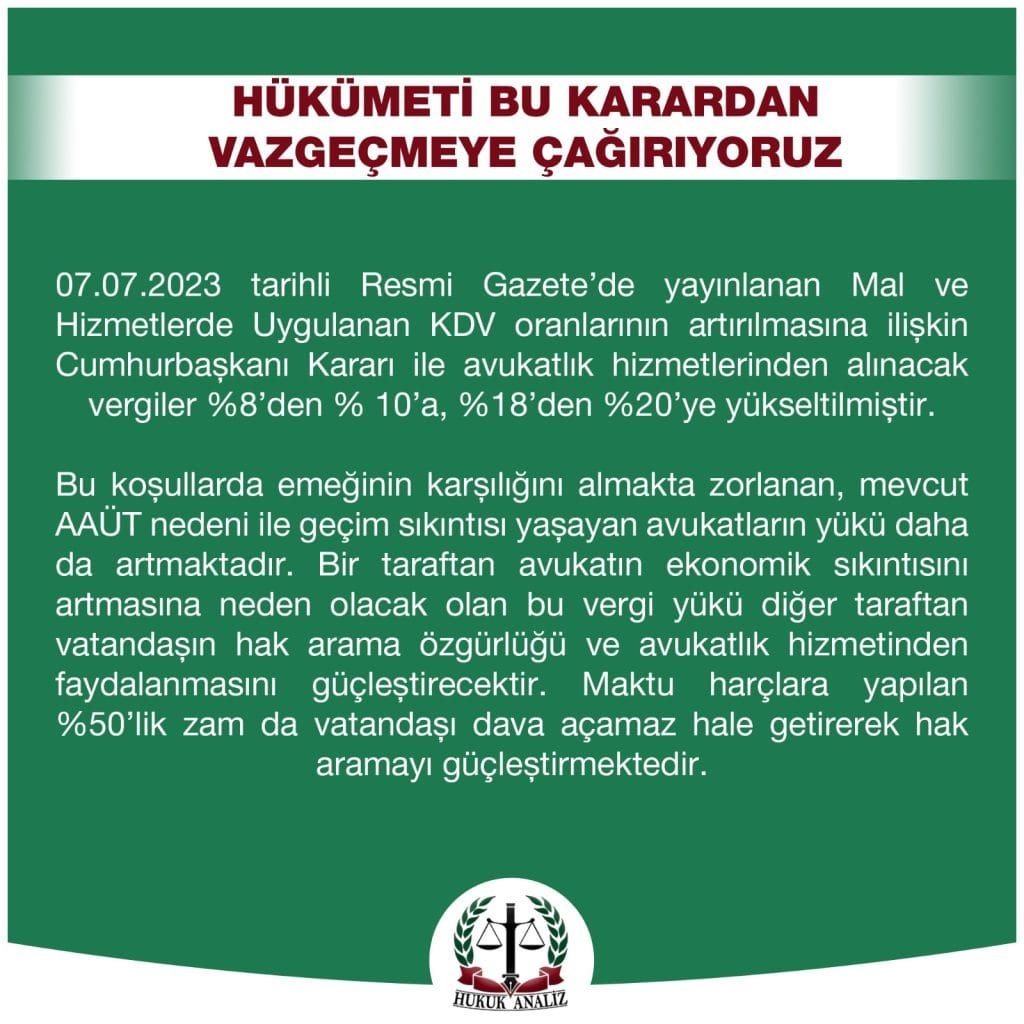 TBB ve Barolarımızı avukatların sorunlarına çözüm üretmeye davet ediyoruz.